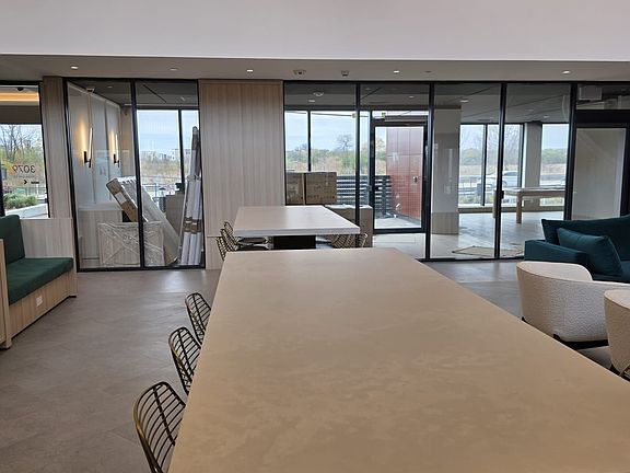 Luxury penthouse corner suiteUnobstructed pond viewsNortheast-facing residenceRefined laminate flooringDesigner modern kitchenTouchless entrySmart thermostat