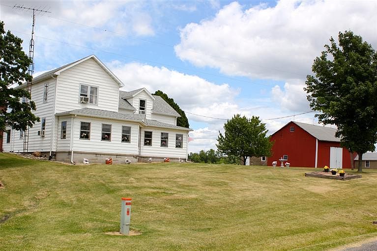 What a traditional classic setting. This beautiful two story farmhouse nestled in the countryside is immaculately kept and ready for a new family. Could be used as a full time residence or the perfect get-a way from the big city retreat. Warm and inviting this five bedroom home offers plenty of room for family and visitors during the holidays. New electrical service and much of the plumbing all in. In addition to the main house there is a separate three season gathering building. It has a built in brick barbecue, a bar, and seating enough for a large gathering. The outside has a large deck with a great view of the thirty various fruit trees and manicured yard large enough for horse shoes and kid games. You will no doubt be the location for the annual family reunions. The large farm is co mplete with a 49x55 barn w/12x16 loft. There are 5 other outbuildings on the property. The home and additional building utilize around five acres.Fifty tillable acres leased to farmer year to year.