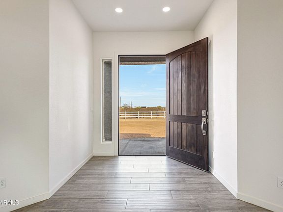 Welcome to this stunning custom built luxury home nestled within an exclusive gated community offering privacy, space and upscale living situated on an expansive 2.41 acre lot, this home is designed with quality craftmanship and thoughtful details throughout. Key features include an oversized garage extra long to accommodate trucks and to provide ample storage space. Spacious great room, beautiful wood look tiled floors and large windows that flood the space with natural light and offer sweeping views of your expansive yard and covered patio. Gourmet kitchen with quartz countertops, extra large bar eating area, abundant cabinetry, upgraded stainless steel appliances, walk in pantry with butcher block countertop ideal for housing small appliances and extra storage. Formal dining room is a versatile space that can easily serve as a home office or flex space. Luxury primary suite with direct access to the covered patio, spa like ensuite bath with massive floor to ceiling tile shower featuring dual shower heads and a rainfall shower. Double vanities with quartz countertops, large linen closet and oversized walk in closet with abundant storage. The guest wing split floor plan ensures privacy, featuring a floor to ceiling shower and patio access perfect for guests or multigenerational living. Second bedroom has a walk in closet. Functional laundry room with cabinetry and utility sink with plenty of room for another refrigerator or freezer. Expansive covered patio spans the entire length of the home, prewired for TV making it ideal for outdoor entertaining. Enjoy breathtaking sunset views every evening from your private retreat. This one-of-a-kind property offers the perfect balance of elegance, comfort and outdoor space ideal for those seeking a serene lifestyle without compromising on modern luxury. Call for your private tour today.