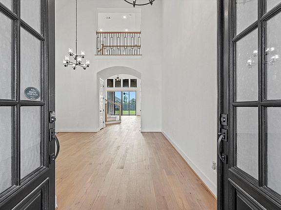 Elevate your home-life in Jordan Ranch, Fulshear’s premier master-planned community. This impressive 2023 build Highland Home in the 65’ section offers 5 bedrooms (Primary + 1 down, 3 up) 5 full baths, one for each bedroom & a powder room down. The double-door entry, sweeping spiral staircase and soaring ceilings set a sophisticated tone, while floor-to-ceiling sliding doors open to a 2-story covered patio and generous backyard. Throughout the main level, neutral-tone wood flooring adds elegant warmth. The chef’s kitchen features quartz island with custom cabinetry, glass-front displays, and elegant lighting. The adjoining family room features a striking corner fireplace and dramatic 2-story ceiling. A media room sits just beyond the kitchen for family fun. The extended primary suite offers a serene retreat with a sitting area and large soaking tub, shower, His & Hers closets and sinks. Enjoy the 3-car garage, tankless water heater, a short walk to the elementary school and much more!