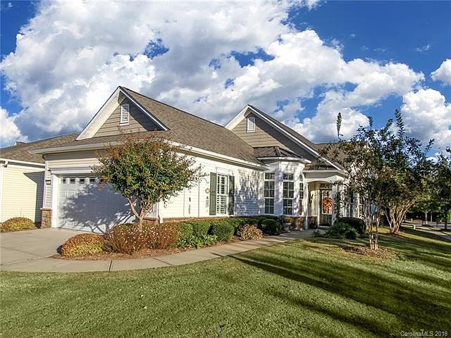 Lovely Gray Myst model featuring stone & vinyl elevation, neutral colors throughout, and on a corner lot. Kitchen offers upgraded stainless steel appliances, computer niche, eat-in breakfast nook, pull outs, Corian counters, and tile backsplash. An open concept with natural light throughout the main living area allows a spacious feel. Great room with a custom built cabinet offers easy organization. The sunroom overlooks the beautiful pergola covered paver patio where you can relax or entertain. Large master suite with ceiling fan & walk in closet connects to the master bath featuring a dual vanity, pull outs and a walk in shower. 2 car garage with epoxy floor finish, cabinets for storage, keypad entry, & garage door windows for natural light. This home is move-in ready! Come check out the community and the active adult lifestyle of Sun City Carolina Lakes.