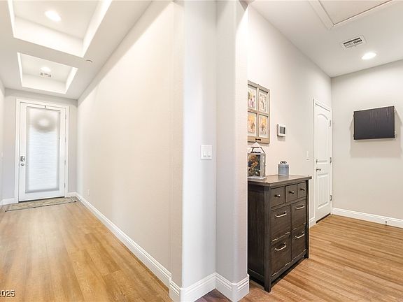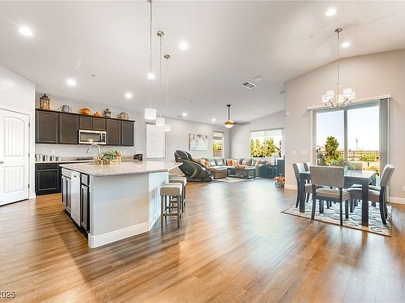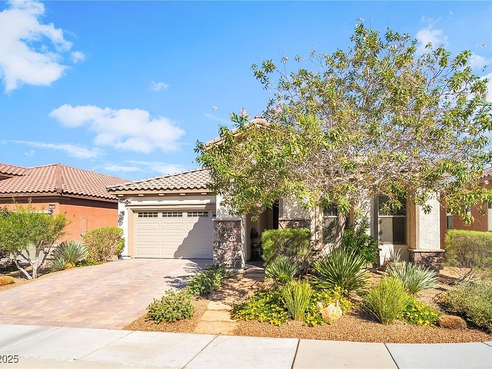 Welcome to this stunning one-story home featuring an open-concept floor plan & soaring high ceilings that create an inviting and spacious atmosphere. The gourmet kitchen is a chef’s dream, complete with an oversized island, beautiful granite countertops, stainless steel appliances, & a huge walk-in pantry for all your storage needs. Step outside to your private backyard oasis with no rear neighbors, an above-ground hot tub, a covered patio & a pergola perfect for relaxing or entertaining. The spacious primary suite includes a large walk-in closet with convenient access to the laundry room (also accessible from the hallway). Every detail of this home has been thoughtfully designed for comfort and functionality. Located in Inspirada community, you’ll enjoy amenities such as parks, community swimming pools, walking trails, tennis & basketball courts, water play areas, & so much more. This home offers the perfect blend of luxury, privacy, & community living, ready for you to move in!