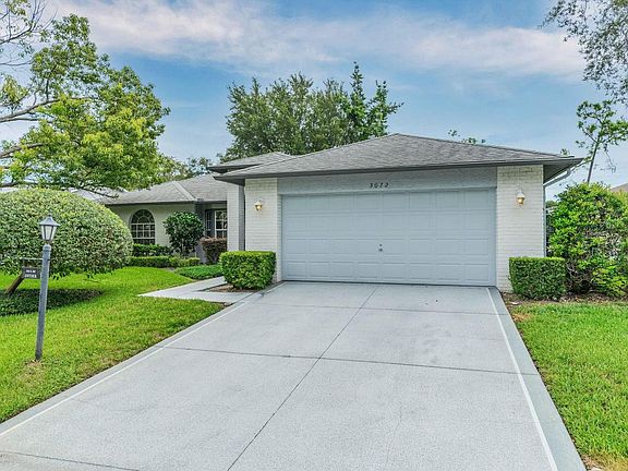 Searching for that Timber Pines home on the golf course? Look no further! This beautiful home is situated on the 13th hole of Grand Pines and offers spectacular views! Three bedrooms and 2 baths with loads of closet storage. Light and bright tiled kitchen and breakfast nook opens to the family room for your entertaining pleasure. Sip your morning coffee on the enclosed lanai while enjoying your surroundings. Two car garage with pull down stairs for even more storage space. Just move right in! - GOLF CART, 2 SETS OF CLUBS, AND MOST FURNISHINGS INCLUDED! Brand new HVAC!