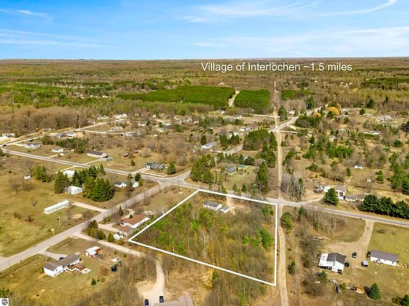 This spacious 2-acre lot features main floor living and includes three bedrooms, along with a master bedroom that has its own private bathroom. The property boasts beautiful gardens and a sense of privacy while still being conveniently located near everything you need. The living room is filled with natural light, offering stunning countryside views, and includes a gas fireplace, perfect for cozy winter evenings. Bath. Gardens and feeling of privacy but close to everything. Natural light adorned Livingroom with countryside views and gas fireplace to cozy up to in the winter. Minutes to Interlochen Arts Acadamy, freshwater rivers and lakes.