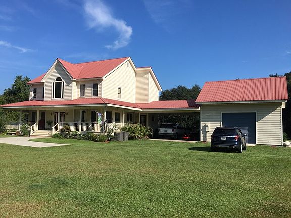 Country living at it's finest! Don't wait to see this warm and cozy 4 bed/3.5 bath farmhouse with a beautiful stone fireplace, plenty of windows overlooking the property and with a dreamy porch sitting on 17.54 acres. A garage workspace with an added on loft inside is sure to impress those who love SPACE for all of their lawn equipment, tools, or just for extra storage. With beautiful oaks, a pond, and acreage with an abundance of deer, this home is already move-in ready. The mobile home sitting on the property HAS BEEN MOVED. However, there is a septic and power pole for someone to put another mobile home, if preferred.