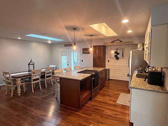 Step inside to a bright open-concept kitchen featuring granite countertops, newer flooring throughout, and fresh paint from walls to ceilings. The split layout offers privacy with a stunning 30’ x 20’ master suite complete with vaulted ceilings, a walk-in closet, and its own private retreat feel. Three additional bedrooms and skylights throughout add warmth and natural light.