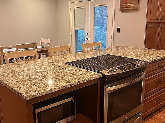 Permanent awningAbove-ground poolFresh curb appealHot tubVaulted ceilingsGranite countertopsFenced backyard