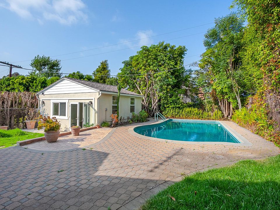 Perched at the top of Cheviot Hills with stunning views, this elegantly remodeled and cozy home features 3 large bedrooms and 2 full bathrooms, spacious dining and breakfast rooms, large living room with fireplace, remodeled kitchen with white countertops and all new stainless steel appliances, and ample closet space throughout. The kitchen and primary bedroom both open up to a lush backyard with a crystal blue pool and a detached bonus/recreation room perfect for a home office/gym/playroom/studio. Circular driveway provides ample parking. Walking distance to the Griffin Club. Owner pays for gardener and pool maintenance. Small dogs permitted. Last month's rent due at signing. Renter pays for water, electric and gas. No smoking permitted.