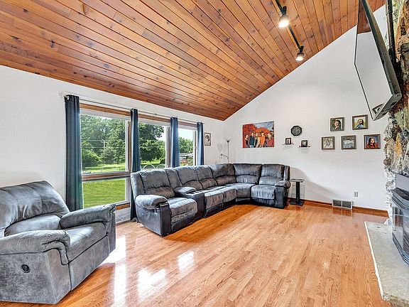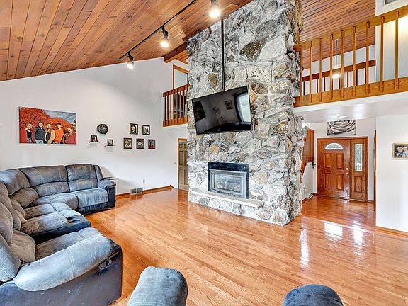 Stunning contemporary open concept home bordering Ridgeway Country Club and Golf Course. Beautifully landscaped setting features fruit trees, arched trellis garden and fenced pet area. Inside the dramatic 2-story foyer leads to the great room with gleaming hardwood floors, floor-to-ceiling fireplace and wall of windows flooding space with natural light. Spacious kitchen offers center island, double pantry, stainless appliances and large dining area with glass doors to the relaxing deck. Primary bedroom suite and laundry room on 1st floor with 2 more-bedroom suites upstairs that also have their own bathrooms. Downstairs there is family room with daylight windows and 2nd fireplace, game room, office and extra bedroom. Whole home generator included.