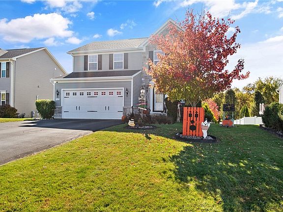 Welcome to this immaculate 3-bdroom, 2.2-bath Colonial located in the highly sought-after Northridge community within the Chittenango School District. This 10-year-old home offers 1,930 sq. ft. of beautiful finished living space and has been enhanced with over $100,000 in upgrades and improvements, providing exceptional quality and comfort throughout. The main level features an open floor plan with a modern kitchen offering granite countertops, stainless steel appliances, a 5-burner double oven, spacious center island, and full pantry. The kitchen opens to the morning room, living room with a gas fireplace, and a beautiful 13'8" x 9'6" three-season room overlooking the landscaped yard. All bedrooms are generous in size, including a 12' x 19' primary suite with walk-in closet and private bath featuring a walk-in shower. The second floor laundry room includes GE Profile smart washer and dryer for added convenience. The finished walkout basement (same footprint as the first floor--approximately 820 sq. ft.) includes a half bath, storage area, and sliding glass doors leading to a private patio and backyard with a shed--offering in-law potential. This home also features a radon mitigation system, central air, and a two-car garage. Located in an established neighborhood with new homes being built within the community, this property combines modern living, thoughtful design, and exceptional value in a desirable location.