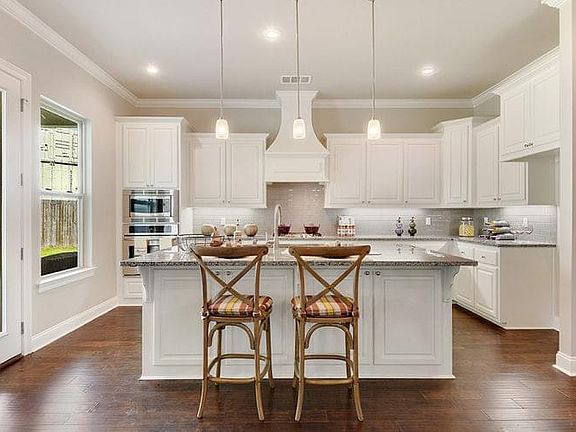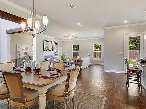 The Vinton is a spacious two story home featuring 5 bedrooms, 3 full baths and over 2800 sq ft of living. Enter into the grand 2 story foyer which is flanked with exposed cypress beams and opens up to the large open living, dining and kitchen. Large living room features a vent-less gas fireplace with marble surround and plenty of windows to let in all of the natural lighting! The kitchen features custom painted cabinets with under cabinet lighting and 5" hardware pulls, 3 cm Fantasy Brown marble, gray herringbone subway tile backsplash, chrome plumbing fixtures, stainless steel appliances including a 30" gas cooktop with wall oven and microwave, pendant lights over the large center island and walk in pantry. Kitchen opens up to the large covered patio which will be plumbed for gas grill and is perfect for entertaining! Master suite and additional bed and bath on the main level. Master suite features a huge spa like bath with dual vanities, 3 cm slab marble, custom framed mirrors, separate soaking tub and job built tiled shower with seamless shower door and a walk in closet. Beautiful stained wood staircase with iron balusters will lead you upstairs where you will find three bedrooms, a full bath and large open loft! Professionally landscaped and sodded front yard! Estimated completion date of June. *Pictures are not of actual home but are of the same floorplan, colors and options may vary.