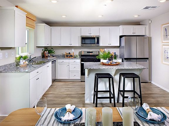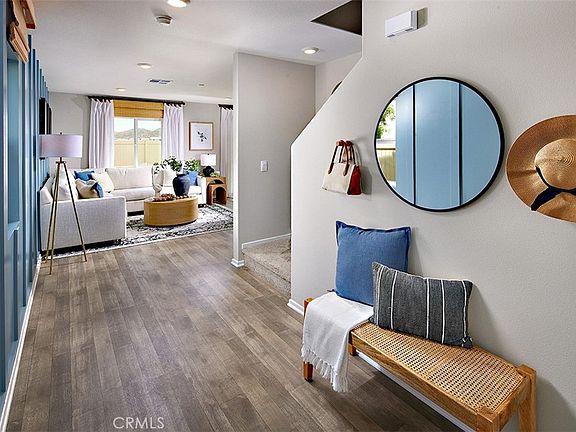 NEW CONSTRUCTION and QUICK MOVE-IN with SOLAR INCLUDED in Winchester - Welcome to Pradera Pointe! This 2,059-sf home has a California Bungalow façade on a CORNER LOT with a DOWNSTAIRS BEDROOM and full bathroom. Upstairs is the main bedroom with ensuite bathroom and generous size walk-in closet, 2 additional bedrooms and full bathroom, and a LARGE upstairs LOFT and, the laundry room! The Island kitchen has New Valle Nevado granite counters, built-in stainless-steel appliances and a pantry closet. The interior comes complete with [Alto] Grey Colored shaker style cabinetry, lots of included recessed lighting throughout, vinyl downstairs and in upstairs bathrooms and laundry room, and plush carpet in bedrooms, stairs and closets! There is also a direct access 2-car garage PRE-PLUMBED for an electric car! This truly modern home has all the Smart Home features you would expect and, is FULLY LANDSCAPED AND IRRIGATED in the front yard. This community is situated close to park and freeway access. This home is anticipated to be ready for move-in Late February of 2026 and we can't wait to Welcome you Home!! **HUGE SAVINGS!! Solar is "No additional cost to your buyer" - it is INCLUDED IN THE PRICE OF THE HOME**