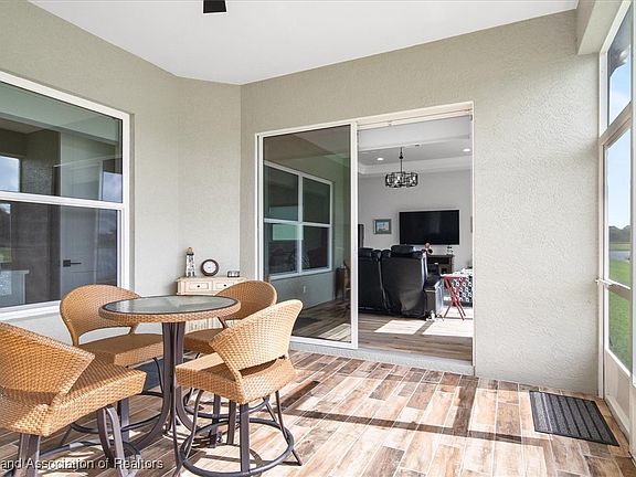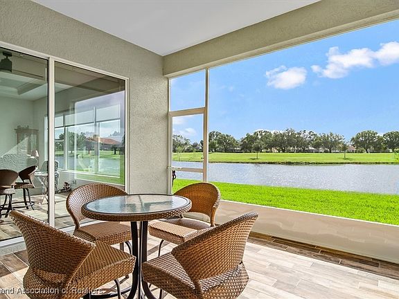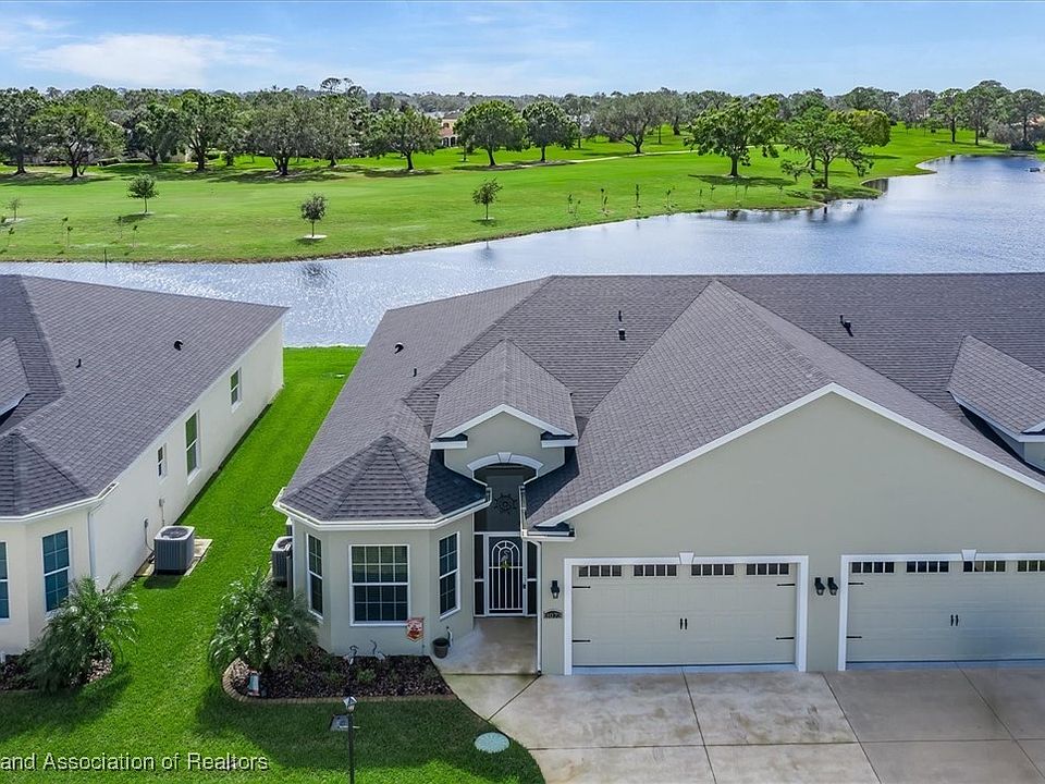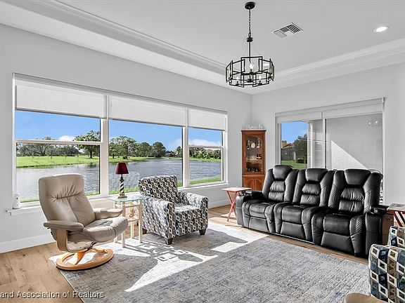 ENJOY FABULOUS LAKE & GOLF COURSE VIEWS from this gorgeous villa! Featuring a spacious, open floor plan with high ceilings, modern light fixtures, designer finishes & luxury vinyl plank flooring throughout. As you enter through the screened front entry, you are welcomed by a nice inviting foyer into the great room with tray ceiling & adjacent dining area. The kitchen with white cabinets, granite countertops, stainless steel appliances & center island is completely open to the living & dining areas, offering exceptional views overlooking the lake & golf course beyond. The primary bedroom features a tray ceiling, walk-in closet, ensuite bath with tiled walk-in shower, dual sink vanity & private water closet. The two guest bedrooms are situated on the opposite side of the home; and one bedroom with guest bath can be closed off by a pocket door for privacy. There's a nice inside laundry room with built-in cabinets & the spick-and-span garage has indoor/outdoor carpet. The screened back patio with new wood-look tile is the perfect spot to relax with an evening cocktail while enjoying views of the water. Plus, you're just steps away from the private, beautifully maintained, community pool & cabana with chipping/putting green & barbeque area. Come enjoy resort-style living at its best!