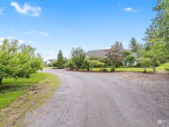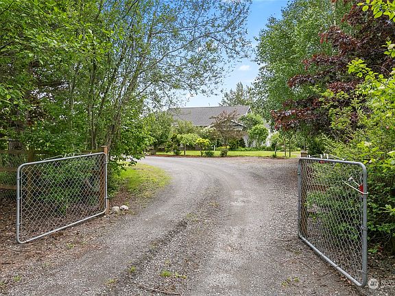 Introducing a truly captivating property nestled on 5 acres of serene, level land, tucked back away from the main road. This custom built rambler boasts Mt. Baker views, mature landscaping, fruit trees, and is fully fenced around the house. Inside you'll enjoy the comfort of radiant floor heating and a whole house HEPA filter system. Prepare meals and entertain in style with custom concrete countertops in the spacious kitchen. Relax in the inviting sunroom or cozy up to the gas fireplace in the living room. With 3 large bedrooms, an office and multiple flex spaces, the options are endless. Additional amenities include a heated 3rd garage bay with a half bath, whole house generator, RV/boat parking, chicken coop, small pond and shed.