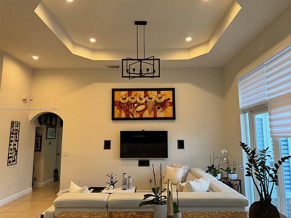 Welcome to this inviting smart home in a desirable neighborhood in Miami. You will be immediately greeted by the living room and 13ft tray ceilings, filled with natural light, and featuring tile flooring. The Open-concept split floor plan design provides a seamless flow from the living room to the rest of the house. The kitchen offers sleek stainless-steel appliances, ample cabinet space, and a convenient breakfast nook. The spacious primary bedroom offers an ensuite bathroom, dual vanities, a soaking tub, a separate shower, and a private water closet with a bidet. New Metal Roof 2021 New Kitchen 2019. Lamp- Breakfast Area/ Lamp- Formal Dining/ Fabric Curtains-Formal Living and Dining, Elfa Closet systems except for the pantry are not included in the sale. Original Owner