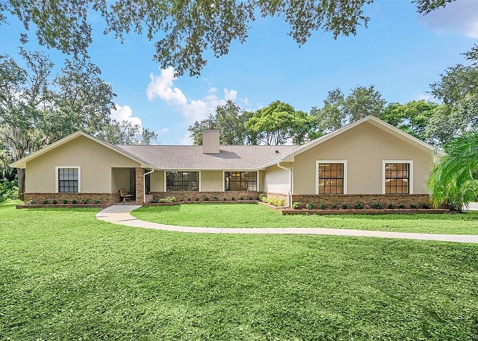 Well built beautiful home with 2,376 sf of heated living area situated on 1.36 acres of oak shaded property. In addition to the attached 2 car garage you will enjoy the extra space of the detached 961 sf oversized block garage with 3 garage doors and finished / lighted ceiling. This home and detached garage was constructed by premium custom home builder, Derrick Builders. You will never get tired of this spacious floorplan. Soaring ceilings with skylights in the center of the home create bright and open living. Owner recently updated much of the flooring with new laminate and carpet. The remodeled kitchen offers upgraded cabinets, solid surfaces and sub-zero refrigerator with room for dining in the breakfast nook and nice sized pantry. The formal dining area has room for your large furniture. In addition to the oversized family room with towering brick fireplace, the formal living room features a gas fireplace, half wall and large window for natural light. The large master suite and bath offers double sinks, garden tub, separate shower and walk-in closet. This home has an upgraded wood trim package with encased windows and raised 6 panel doors. The large screened back porch is great for entertaining or just enjoying morning coffee. The guest bath also offers access to the back porch area. ROOF was replace in 2021. HVAC was replaced in 2022. You will appreciate NO HOA but still conveniently located near schools, shopping and within a short distance of the Orlando International Airport. Make your appointment to see this beautiful home today.