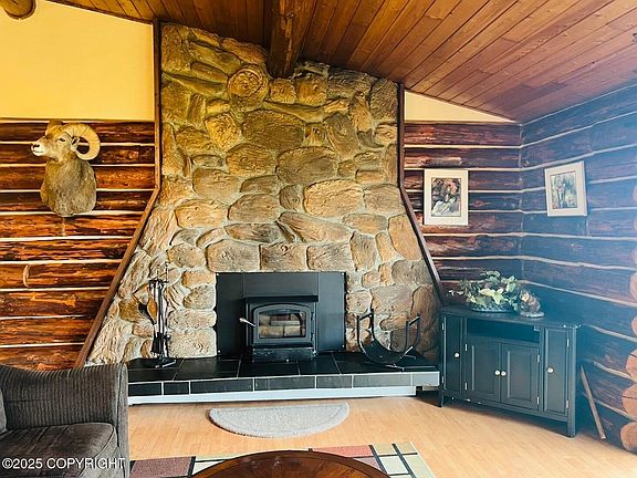 MOTIVATED SELLER- Charming Alaskan 3 bedroom 3 bath 2936sf beachfront Cabin with Cook Inlet access and Panoramic Mountain Views on 1.17 acres. Cabin features a 1 bedroom mother in law apartment, 800sf 2 car Garage with ''Man Cave'' room off back. All appliances convey, HOME WARRANTY INCLUDED.2025 New Home improvements Sea/Retaining wall New Roof Done by Sunrize Construction warranty New Deck Done by Sunrize Construction Two new windows, One New Toyo Heater, Fresh Exterior paint on House and Garage, Logs Chinked and Treated, New Dishwasher, New flooring in Kitchen, Pantry and Closets New Fire Place insert, Cabin Leveled by Ace Dragon Contractors. 2023-Mother in Law Apartment/ BONUS addition New Kitchen w/Pantry,1 Bedroom, 1 Bathroom Livingroom. Seller may consider paying up to $10,000.00 in Closing Cost.