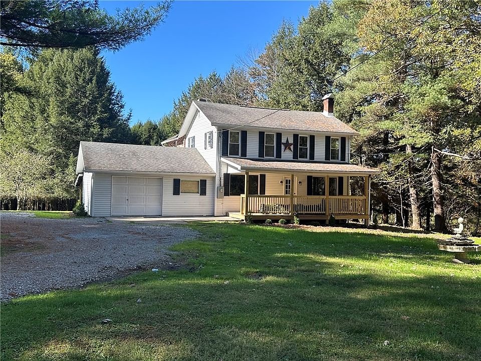Bliss in Farmington - available for sale is a charming 4-bedroom, 2-bath home nestled on 4.67 peaceful acres! A tree-lined driveway leads to this inviting property featuring covered front and back decks, perfect for relaxing and enjoying the views. Inside, you’ll find spacious living areas, a bright kitchen, and a cozy wood-burning fireplace that adds warmth and character. Outside, enjoy your very own private pond, ideal for quiet reflection or outdoor fun. The attached garage adds convenience, while the expansive land provides space to garden, explore, or simply unwind in nature. Ideally located along Route 40, this property offers the perfect blend of privacy and accessibility to Ohiopyle, Nemacolin, and all that the Laurel Highlands has to offer.