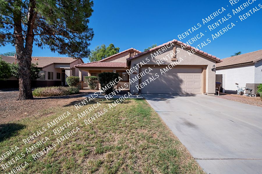 Nice 1-level house in Johnson Ranch. Golf course community with a community pool. 3 bedrooms PLUS a den. Generous sized rooms and lots of storage throughout. Open kitchen and lots of counter space! All STAINLESS appliances included!! Gorgeous grass backyard landscaping makes it perfect to entertain and relax in AZ's beautiful weather. Extended length patio gives shade to the entire back of the home! (No overnight street parking in this HOA between the hours or 1am and 5am.) Available 11/01 or soon after