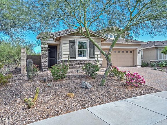 This pristine home is in the master planned community of Vistancia, with its award-winning pools, clubhouse, tennis courts, community center and more! Located in a quiet part of the neighborhood, this desirable corner lot also offers view fencing and backs to the green belt, creating a private and serene setting. The gourmet kitchen boasts stainless steel appliances, granite counters, staggered cabinets and a gas grill top. Neutral tile runs through all the high-traffic areas of the home for easy maintenance and timeless style. The private backyard features a pavered covered patio and plenty of room for seating or outdoor dining, making it a perfect retreat to enjoy Arizona's beautiful weather year-round.