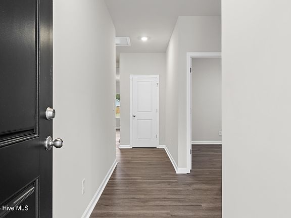 The private primary suite is tucked toward the rear of the home for added privacy, featuring a spacious bedroom designed for relaxation. The luxurious primary bathroom includes dual sinks and a walk-in shower, complemented by an expansive walk-in closet. A unique convenience is the direct connection from the primary suite to the laundry room, making everyday tasks easier. This 3-bedroom, 2-bathroom home also includes a two-car garage, making it an ideal choice for modern living with thoughtful flow and practical design.