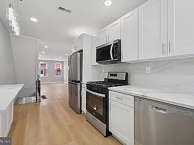 Totally renovated 3 bedroom and 2 bathroom house in the heart of Port Richmond. Great location and great block. Very close to I 95, center city, schools , shopping centers and transportation. Living room and kitchen combined. Finished basement with laundry room.Nice size backyard. First, last, and security deposit required to move in. Good credit required.