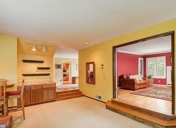 This 2,544 sq. ft. contemporary home is a value. Located across from a greenbelt on a quiet and centrally located street. There are 3 ample bedrooms and 2.5 baths, both a living room and a entertaining room, separate dining room and an extra large landing upstairs that is perfect for a sitting, study or play space. Lots of bonus features like crown moldings, hardwood floors, wet bar and built-ins in the entertaining room and a spacious master suite with fireplace. Outside, the home is surrounded by lush gardens and a green lawn with a private back yard complete with deck, patio, lawn and landscape. This home offers locations, comfort and space for a great price.