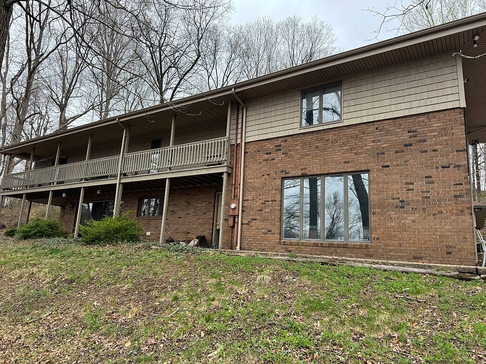 Welcome to 3076 E State Road 66 in Cannelton. Inside this stunning large home you will find 4 large bedrooms with ample closet space, 2.5 bathrooms, an office, along with a bar/sitting room. The kitchen and dining areas boast picturesque views of a lake and wooded acre, creating a tranquil atmosphere. An expansive deck with multiple accesses, including from the mater bedroom, provides ample space for entertainment and relaxation. There are 2 working wood burning fireplaces in the home, one of which is in the master bedroom. This wonderful property also features a 2 car detached garage, a wonderful patio and a roof that is only 3 years old! Do not miss your chance to own this spacious, secluded home!