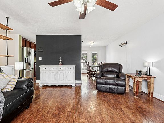 100 percent Financing Available Through USDA/Rural Housing! This immaculate home is move-in ready with updates inside and out. The interior features maintenance-free floors, neutral décor, and ample natural light throughout. The updated kitchen boasts stainless steel appliances, a tiled backsplash, and a stylish barn door leading to an oversized pantry. Both bathrooms have been remodeled with solid surface showers and custom-built vanities. Added touches include custom built-in shelving for storage and display. Step outside to an enormous, fenced backyard complete with a wooded view, fire pit, and storage shed—perfect for entertaining or relaxing. Major updates include a newer HVAC system and a brand-new dimensional roof, giving peace of mind for years to come.