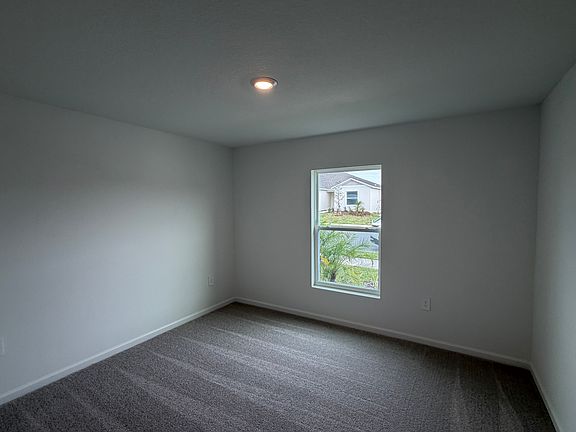 The spacious owner's suite is privately situated at the rear of the home and features an en-suite bathroom and a large walk-in closet. Three additional bedrooms are located toward the front of the home, providing flexibility and privacy for family members or guests. A versatile flex room adds extra functionality and can be used as a home office, playroom, or media room.
