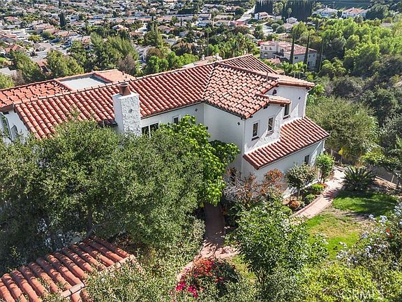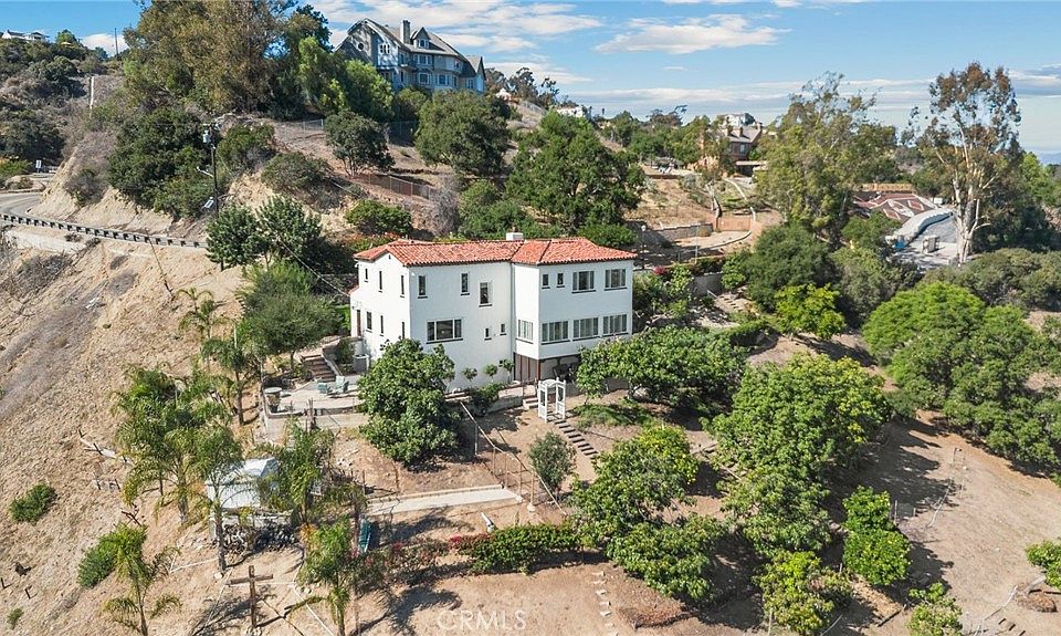 Originally built in 1931, the home retains its architectural character with a signature red tile roof, decorative tiles, and graceful arched doorways. Inside, the expansive living room welcomes you with a classic large fireplace and a separate family room with sweeping vistas that create an atmosphere of peace and sophistication. A beautifully remodeled bathroom adds a touch of modern luxury, while the finished basement provides flexible space for entertaining, a home office, or guest accommodations with their own entrance and 3/4 bathroom. Pick from your own private grove of various fruit and avocado trees and bring your horses and farm animals!