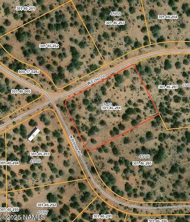 From Seligman, take Route 66 west to Fort Rock Rd turn left, to Bridge Canyon Parkway turn right and follow to W Echo Lane and turn left. Property will be on the left at the corner of N Bisnga Rd.