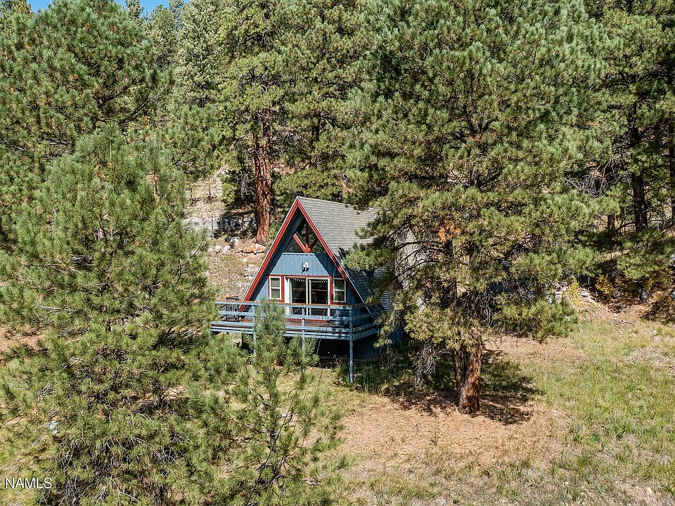 Looking for a cabin in the woods on over a half an acre? Well, look no further. Such a sweet spot at the end of the road. Quiet and serene with trails to walk nearby while only minutes from Flagstaff. 2 bedrooms and 2 baths with a bonus washer/dryer room. Very private feeling to the back. Living room has a stone mantle and looks out to a front deck overlooking the seasonal creek of Pumphouse Wash.