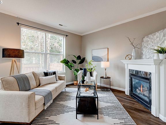 This end unit townhome offers the convenience of low maintenance living without the apartment feel, plus a backyard! Cozy up to the gas fireplace in the winter and bbq in the backyard in the summer. Retreat to your primary bedroom suite complete with a walk-in closet organization system, dual sinks, and separate water closet. Enjoy treetop views from the primary bedroom and lots of natural light throughout the house. Washer, dryer, and refrigerator are all included. Great guest parking in this community! Home energy score is 8/10! Updates include new furnace in 2023, NEW flooring throughout, new light fixtures, and fresh living room paint. The cherry on top? The sellers are offering a premium home warranty. Ask for more details. Don't miss nearby Rood Bridge Park when you tour the home where one can meander trails, launch a kayak, or enjoy the pickle ball courts. Other nearby parks include Shute Park and Jackson Bottom Wetlands. Robin Meadows neighborhood is close to Historic Downtown Hillsboro thriving with farmers markets, fun year-round events, an amazing arts scene, and delightful downtown shops and restaurants. All that and more is only a few minutes drive away. Come see for yourself! [Home Energy Score = 8. HES Report at https://rpt.greenbuildingregistry.com/hes/OR10235826]