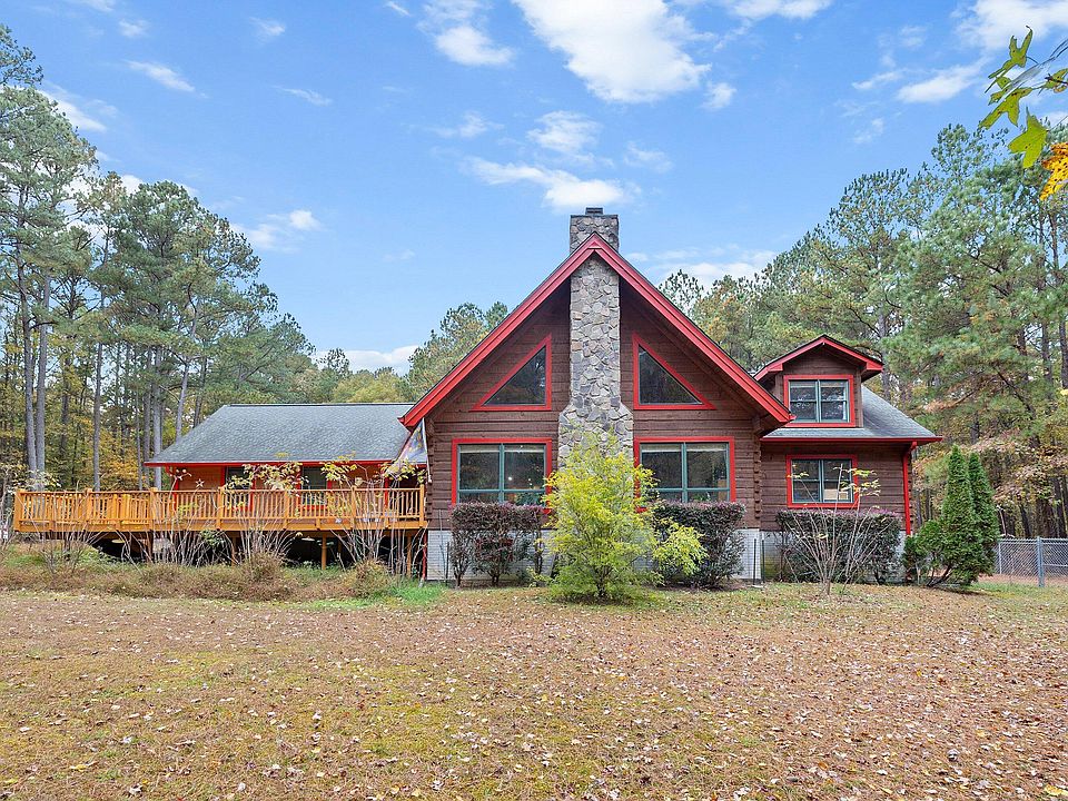 Experience peaceful country living on 10 acres at 3077 Sam Moss Hayes Road in Oxford, NC. This one of a kind log cabin blends comfort, functionality, and outdoor living in a truly special setting. Enjoy the outdoors from any of the three spacious decks, or take in serene views of the stocked pond from the family room and second-floor primary suite. Filled with natural light and showcasing cathedral ceilings and exceptional craftsmanship, the home offers both warmth and character throughout. Inside, the spacious layout features bright living areas perfect for everyday life and entertaining. The chef's kitchen features a gas cooktop, double ovens, deep sink, and seating at the kitchen counter. The primary suite offers a private retreat, while the guest room is equipped with a convenient Murphy bed for flexible sleeping arrangements. The walkout basement includes an additional 1,860 square feet with a mini split providing efficient heating and cooling year round for a workshop or recreation space.Additional features include a fenced backyard, storage shed, and a convenient side-entry garage. Whether you're looking for a hobby farm, space for outdoor recreation, or simply a peaceful retreat don't miss out on 3077 Sam Moss Hayes Road. Country living on 10 acres all while being just a short drive to Raleigh, Durham, and Oxford.