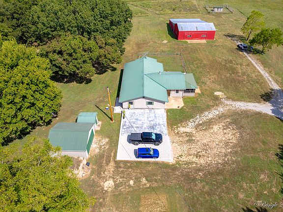 This beautiful country property features 3 spacious bedrooms and 3 full baths, designed with both comfort and functionality in mind. Two bedrooms offer private baths, while the third has convenient access for guests. The open floor plan includes a large dining area with a freestanding fireplace, and the custom updated kitchen boasts abundant cabinetry, a versatile center island, and a huge walk-in pantry--making it a cook's dream. The mudroom doubles as a laundry space with backyard access, and the home is equipped with central heat and air, along with additional baseboard heaters in two bedrooms and two baths.The land offers the perfect mix of open and wooded ground, with approximately 12 acres of pasture and two ponds, providing water for livestock and a peaceful country setting. A 50x30 barn with a 50x44 enclosed lean-to includes pens for goats or sheep and is tall enough for RV parking. There's also an enclosed chicken coop, a detached 22x20 workshop/garage, and a climate-controlled well house ideal for starting garden plants. Adding to its unique charm and practicality, the property also includes a historic pre-1900 storm shelter/root cellar.With its spacious home, versatile outbuildings, fertile pasture, and multiple ponds, this 38-acre property is well-suited for horses, cattle, a hobby farm, or anyone looking to enjoy the best of country living. Upgrades include new custom windows, outlets, and plumbing in kitchen/bath. Kitchen features granite counters, cabinets, island with electric, built-in spice rack, sink, faucet, filter, 36' propane cooktop, convection oven, and microwave. New entry and sliding doors, ceiling fan, vanity, mirror, disposal, exterior lighting. Outside: fencing cleared, pond restored, new concrete/gravel pads, driveway gravel, trails, propane tank, and Starlink internet.Property can also be sold with 23 acres and the total of 63