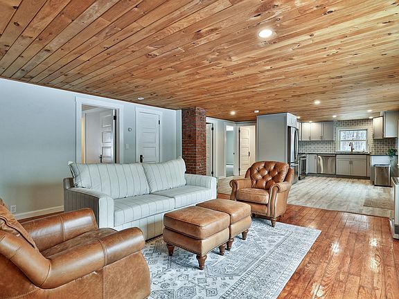 Small barnKnotty pine ceilingsAntique softwood floorsCompletely remodeled bathroomOne-level livingFully updated homeUpdated kitchen