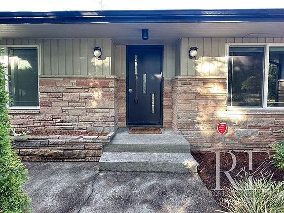 This beautifully updated mid-century modern rambler in Poulsbo offers a rare blend of architectural charm and high-end comfort. From the moment you walk in, the home welcomes you with exposed wood beams, warm-toned flooring, and an open layout that's both expansive and inviting. Skylights and full-length windows bring in streams of natural light, creating a vibrant and uplifting atmosphere throughout the main living areas.