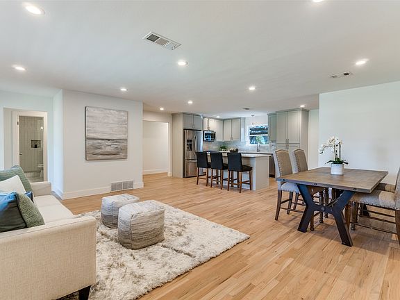 This thoughtfully designed home offers an inviting atmosphere for both relaxation and entertainment. The lack of carpeting ensures easy maintenance and a clean, modern aesthetic that flows seamlessly from room to room. With the potential for two master suites and split bedrooms, privacy and flexibility are maximized, making it ideal for multi-generational living or hosting guests in comfort. The centerpiece kitchen, complete with a generous island, quartz countertops, and top-quality finishes, is perfect for gatherings, meal preparation, and culinary exploration. Beyond the main living spaces, the expansive family room provides ample space for recreation, hobbies, or family movie nights. The master bath boasts luxurious touches like a barn door entry, a deep standalone soaking tub, elegant marble appointments, dual sinks, and custom cabinetry—culminating in a spacious walk-in closet that offers abundant storage and organizational options. Recent upgrades such as new windows, an advanced HVAC system, updated electrical wiring, and a sturdy wood fence contribute to improved energy efficiency, safety, and outdoor enjoyment. Altogether, this home presents a harmonious blend of style, function, and contemporary comforts suited for any lifestyle.