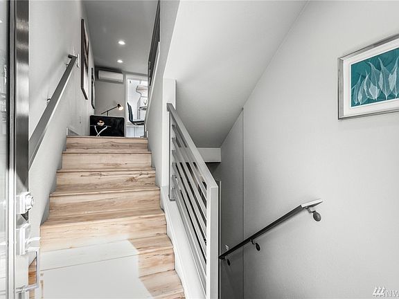 Glorious color combination highlight this 4-Star Built Green home boasting phenomenal efficiency with a modern flare. Dynamic main floor offers sleek kitchen, eating/living space, and large windows. Split bedroom floorplan with one lower suite and one upper, both with adjacent full bathrooms. Clever design thoughtfully maximizes usable square footage and emphasizes natural light. Fully fenced patio with hose spigot. Stunning oversized roof top deck showcasing partial city, territorial, and mountain views, with water and gas hookups. Desirable home office niche, A/C, and all amenities within blocks! Numerous transit options including free shuttle to West Seattle Water Taxi. Enjoy this masterful home conducive to your low impact lifestyle.