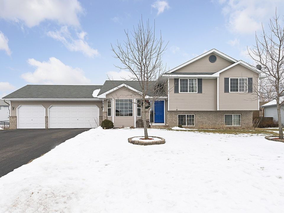 You will love this very well maintained and improved former model home. The convenience of entering the kitchen from the large 3 car garage makes grocery getting much less of a chore-no stairs! The spacious Dining/Kitchen area is open to the lower level family room and walks out to a large deck overlooking the fenced back yard. Great for BBQ's and entertaining! The cozy family room features gas burning fireplace that take the chill of the cold winter days and the central air conditioning takes the heat off hot summer nights. The home is truly in move in condition with fresh new carpeting, paint and a new roof to be install prior to closing. The new washer and dryer will certainly help as will the 90% plus efficient furnace system. Three bedrooms on the same level and the full owners private bath and a main floor full bath make this far more than a comfortable for everyone. Don't wait it won't be available for long, Take a look today!