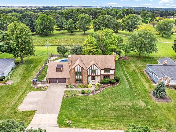 Welcome to this stunning 5-bedroom, 4-bathroom home, thoughtfully upgraded with luxurious amenities throughout. Featuring two stately fireplaces, this home exudes warmth and sophistication, enhanced by rich dark oak crown molding and striking 8-panel doors throughout. The heart of the home is the gourmet kitchen, boasting a 16-foot granite island perfect for both casual dining and entertaining. With new flooring and stainless-steel appliances, the kitchen is as functional as it is stylish. The many recent updates include bathrooms, with one offering a sauna, fresh exterior paint, two new HVAC units, and refinished interior casing on all windows, ensuring comfort and efficiency year-round. Step outside to your own private oasis with an in-ground pool featuring a brand-new liner and heater, all surrounded by a newly tuck-pointed stone/brick fence, offering both security and charm. The three-season sunroom provides a versatile space that can be enjoyed almost year-round, whether you're sipping your morning coffee or hosting guest. This property is a true gem, it's move-in ready and waiting for you to create your next chapter.