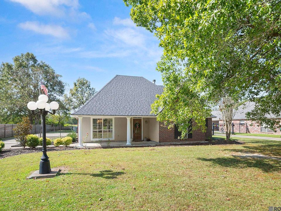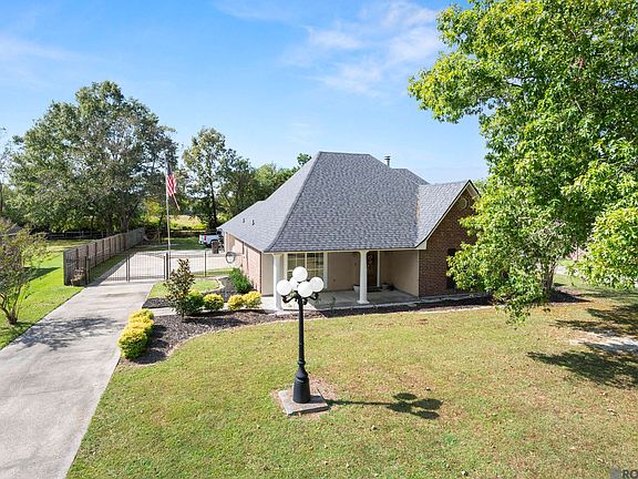 Looking for a home that checks every box? This one delivers! Tucked off Dunn Road on nearly half an acre, this turn-key property combines quiet privacy, modern upgrades, and true Southern charm — all without the worry of flooding or flood insurance. EXTERIOR & LOT: New roof (2023)! Wrought-iron privacy gate with remote access. Two-car carport plus extended concrete parking pad. Fully fenced 0.46-acre lot — perfect for pets, kids, or entertaining. Extended covered patio with additional concrete slab and landscaped yard featuring mature shade trees. INTERIOR HIGHLIGHTS: Entire home freshly painted in modern neutral tones. All-new flooring throughout (no carpet). Spacious living room with crown molding, large windows, and a cozy gas fireplace. Open-concept kitchen and breakfast area with gas range, large breakfast bar, ample cabinet storage, and refrigerator to remain at Act of Sale. Separate laundry room with extra storage. PRIMARY SUITE: Oversized bedroom easily fits a California King. Two walk-in closets. Dual vanities, jetted soaking tub, and separate walk-in shower. High ceilings with ceiling fan for added comfort. BONUS FEATURES: Did NOT flood and does NOT require flood insurance. Energy-efficient gas fireplace and stove. Convenient location just minutes from Lockhart Rd, Range Ave, and I-12 — offering easy access to schools, shopping, and restaurants. This Denham Springs gem offers the perfect balance of space, comfort, and peace of mind. Schedule your private showing today — homes this well cared for don’t last long!
