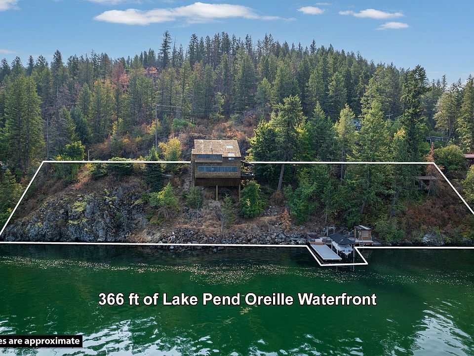 Imagine waking up every morning to breathtaking views of Lake Pend Oreille and the majestic Schweitzer Mountain! This 3-bedroom, 2-bathroom home is your dream lake retreat. Nestled on a private 0.63-acre estate, it spans two lots with an impressive 366 feet of pristine shoreline. That's right, you'll have direct access to your own slice of paradise! Launch your kayak or boat from your newly rebuilt dock, which even includes a solar-powered boat lift. Plus, enjoy the perks of a community beach without the hassle of an HOA or CCRs. Whether you're taking a dip in the crystal-clear waters or relaxing on the shore, the views here are simply unbeatable. Inside, the expansive windows perfectly frame the lake, mountains, and the charming town of Sandpoint, which is just a convenient 10-minute drive away. The open-concept design makes you feel connected to the stunning natural surroundings, and the cozy living space is perfect for unwinding after a day of adventure. This home is more than just a place to live. It's a lifestyle! With a charming beach bunkhouse for guests and a spacious waterfront patio, you'll have plenty of room for entertaining. Plus, there's a handy storage shed to keep all your lake toys organized. Every day here is a chance to make lasting memories in an idyllic setting.