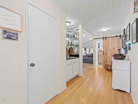Welcome Home to This Beautifully Upgraded Single-Story Gem! This charming three-bedroom home offers true single-level living with no interior steps, nestled in the heart of the desirable Northwood Community. Featuring a spacious open-concept layout, the home is enhanced by vaulted wood-beam ceilings, sophisticated newer lighting, and seamless hardwood and luxury vinyl plank flooring throughout. The light-filled kitchen is a perfect blend of style and function, showcasing butcher block countertops, a designer sage green tile backsplash, sleek white cabinetry, and stainless steel appliances. The adjacent dining and living areas create an ideal space for both relaxing and entertaining. Retreat to the Primary Suite through a sliding barn-style door, where you'll find a vaulted ceiling, eye-catching wood-paneled accent wall, generous closet space, and a beautifully updated en-suite bath with a marble-topped dual-sink vanity, upgraded mirrors and lighting, and a large walk-in shower.