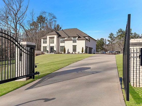 Welcome to 3079 Flat Shoals Rd SW, an extraordinary private lakefront estate in Conyers, where refined luxury meets serene living on 3.9 acres of pristine grounds. Tucked behind iron gates and approached by a long, elegant driveway, this impressive 5-bedroom, 4-bath residence spans approximately 5,776 square feet and offers a rare blend of grandeur, privacy, and natural beauty. A pair of stately double iron doors opens to a sunlit two-story foyer that immediately sets the tone for the home's timeless sophistication. The main level features a formal living room and an expansive formal dining room designed to seat 12+ guests, highlighted by custom molding, detailed trim work, and graceful archways throughout. At the heart of the home, the luxury kitchen is a chef's dream, showcasing white cabinetry, a 5-burner gas cooktop, double wall ovens, built-in microwave, and an oversized island. The kitchen flows seamlessly into the breakfast area and the dramatic family room, where soaring ceilings and floor-to-ceiling windows capture breathtaking lake views and fill the space with natural light. A bedroom and full bath on the main level provide ideal accommodations for guests or multigenerational living. The upper level is anchored by an opulent primary retreat featuring a fireplace, private sitting area, spa-inspired ensuite with soaking tub, and generous walk-in closets. A junior suite with a private bath offers added comfort, while two additional bedrooms share a well-appointed Jack-and-Jill bathroom. Outdoor living is equally impressive. The exterior features a screened-in back porch and a level backyard overlooking the lake, creating the perfect setting for entertaining, relaxation, or enjoying peaceful waterfront sunsets. Despite its private setting, this estate is conveniently located just minutes from Conyers shopping and dining, with easy access to major interstates for a quick commute to Intown Atlanta and area events. This remarkable lakefront estate at 3079 Flat Shoals Rd SW offers unmatched space, privacy, and luxury-an exceptional opportunity to own a truly distinguished home in Conyers.