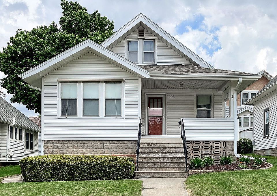 Welcome to this well-maintained 1.5-story bungalow nestled on a serene street, mere moments from Hanscom Park. Positioned with easy access to Hwy. 75, I-480 and I-80, this home offers a harmonious blend of tranquility and convenience. Step inside to discover a delightful mix of carpet, hardwood, and vinyl floors beneath the conventional ceilings. The main level boasts an inviting office/study and an elegant formal dining room with beautiful leaded glass built-in buffet, ideal for hosting gatherings and making cherished memories. Two charming bedrooms and a full bath provide comfort and practicality. The kitchen, adorned with commercial vinyl tile floors, boasts gleaming granite counters, custom cabinets, a glass-tiled backsplash, and a suite of newer stainless steel appliances including a 5-burner gas stove. The primary bedroom, situated on the main level, exudes warmth with its hardwood floors , beautiful woodwork and classic design. Main level also has updated period light fixtures. Ascend to the upper level to find an additional bedroom, perfect for accommodating guests or creating a private retreat with original oak floors, and large adjacent walk-in closet with new carpet. Meanwhile, the unfinished lower level presents boundless opportunities for future expansion, limited only by your imagination, including built-in storage shelving and a bonus storage area beneath the study/den above. Outside, a welcoming porch beckons you to unwind and enjoy the surrounding tranquility and enjoy the sunset, while a chain link fence partially-encloses the back yard. The alley-access oversized garage, has storage and work areas as well as an electrical sub-panel. With its charm, convenience, and potential, this home offers a canvas to paint the story of your dreams.