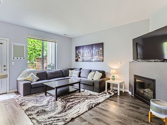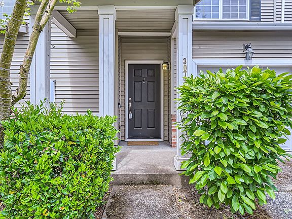 Welcome to this beautifully maintained 3 bedroom, 2.5 bath townhome nestled in a quiet and friendly community. This inviting home features an open concept floor plan with high ceilings and large windows that fill the space with natural light. The attached garage and driveway provide convenient parking. Enjoy a fenced backyard that backs to peaceful community green space and walking trails—perfect for relaxing or entertaining. The backyard has been thoughtfully updated with grass, a garden area, and a concrete patio, creating your own private outdoor retreat. Recent updates include a new furnace and A/C added in 2020, updated flooring, stylish bathroom light fixtures, tile in the third bathroom, and upgraded lighting in the upstairs bedrooms and hallway. The kitchen also features added hardware on the cabinets for a fresh, polished look. Convenient to schools and Rood Bridge Park, this home offers both comfort and convenience. The HOA covers exterior maintenance—including fences, front yard and common area landscaping. [Home Energy Score = 9. HES Report at https://rpt.greenbuildingregistry.com/hes/OR10238576]