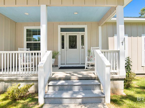 Step into an enchanting coastal sanctuary where modern craftsmanship meets beachside charm. Built in 2017 with Hardie Plank siding and a hip-gable roof of asphalt shingles, this single-story residence offers approximately 2,016 sq ft of living space (2,359 sq ft including the enclosed porch). Soaring 9-ft ceilings and abundant fanlights create a bright, airy ambience, while carpet and ceramic tile floors anchor the space with warmth and durability. The open layout flows effortlessly from a dramatic foyer into a spacious living area, leading to an enclosed porch perfect for evenings of laughter and good times. A gourmet kitchen with slow-close cabinets, a generous pantry and modern appliances makes entertaining a joy. A roomy linen closet and guest bath with tub/shower combo add convenience. The primary suite features a luxurious stand-up shower and a walk-in closet so large it feels like another room. Outside, the detached single-car garage (built 2018) with an attached double covered and floored carport (approx. 528 sq ft) offers ample storage for vehicles, boats or RVs. Situated on Lot 25 of the Soldiers Creek Add subdivision, the property includes a 2/52 interest in the community’s private parkway and beach area, granting residents exclusive access to the tranquil waterfront. With a slab foundation and efficient FHA/AC system (2016), this home is built for low-maintenance living.Nestled in the serene hamlet of Perdido Beach, this property presents a rare blend of tranquility and convenience. Whether you’re watching sunsets from the enclosed porch, stowing away treasures in the expansive closet, or simply enjoying the coastal breezes, every corner whispers, “Welcome home.” Don’t miss your chance to live this stage-worthy dream. Buyer to verify all information during due diligence.