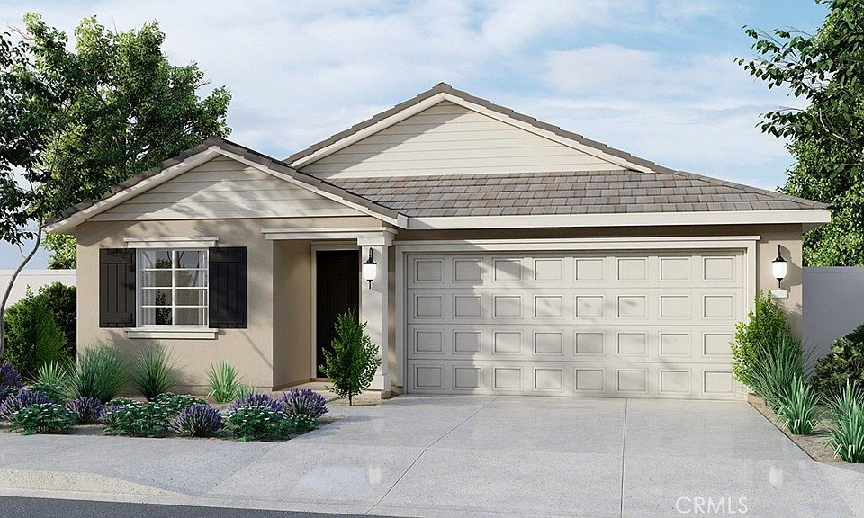 NEW CONSTRUCTION in Winchester – SOLAR INCLUDED!!! - SINGLE-STORY! This 1,342-sf 3BR / 2BA California Ranch façade beauty has a COVERED PORCH, island kitchen with breakfast bar, New Valle Nevado granite countertops, built-in stainless steel appliances and double-door pantry. The primary bedroom has an ensuite bathroom that includes dual vanity sinks, a walk-in shower and wardrobe closet. There are two additional bedrooms and a full bathroom and a conveniently located laundry room. This home comes with White shaker-style cabinetry and lots of included recessed lighting throughout, plush carpet in bedrooms and closets and vinyl in main living areas! A truly modern home, it has all the Smart Home features you would expect INCLUDING a direct-access 2-car garage PRE-PLUMBED for an electric car! And, this home is FULLY LANDSCAPED and IRRIGATED in the front yard. Pradera Pointe is situated close to parks and freeway access. We anticipate a February 2026 move-in and we can't wait to Welcome you Home! **HUGE SAVINGS!! Solar is "No additional cost to your buyer" - it is INCLUDED IN THE PRICE OF THE HOME**